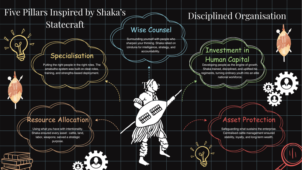 Shaka trained, disciplined, and uplifted his regiments, turning ordinary youth into an elite national workforce. Businesses grow when leaders invest in skills, culture, and continuous development because people are the most valuable asset